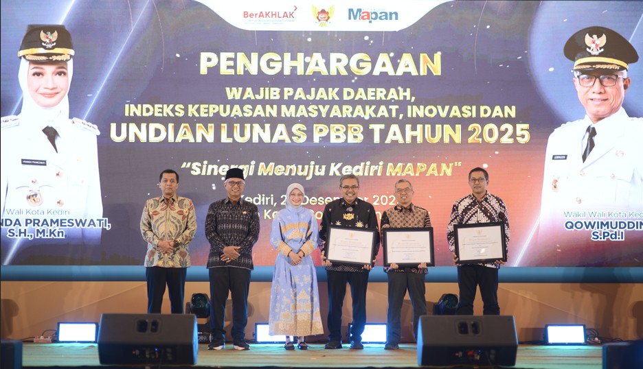 Penyerahan piagam penghargaan dilaksanakan dalam rangkaian acara Gebyar Undian Lunas PBB Kota Kediri 2025 yang digelar pada Senin, 29 Desember 2025.